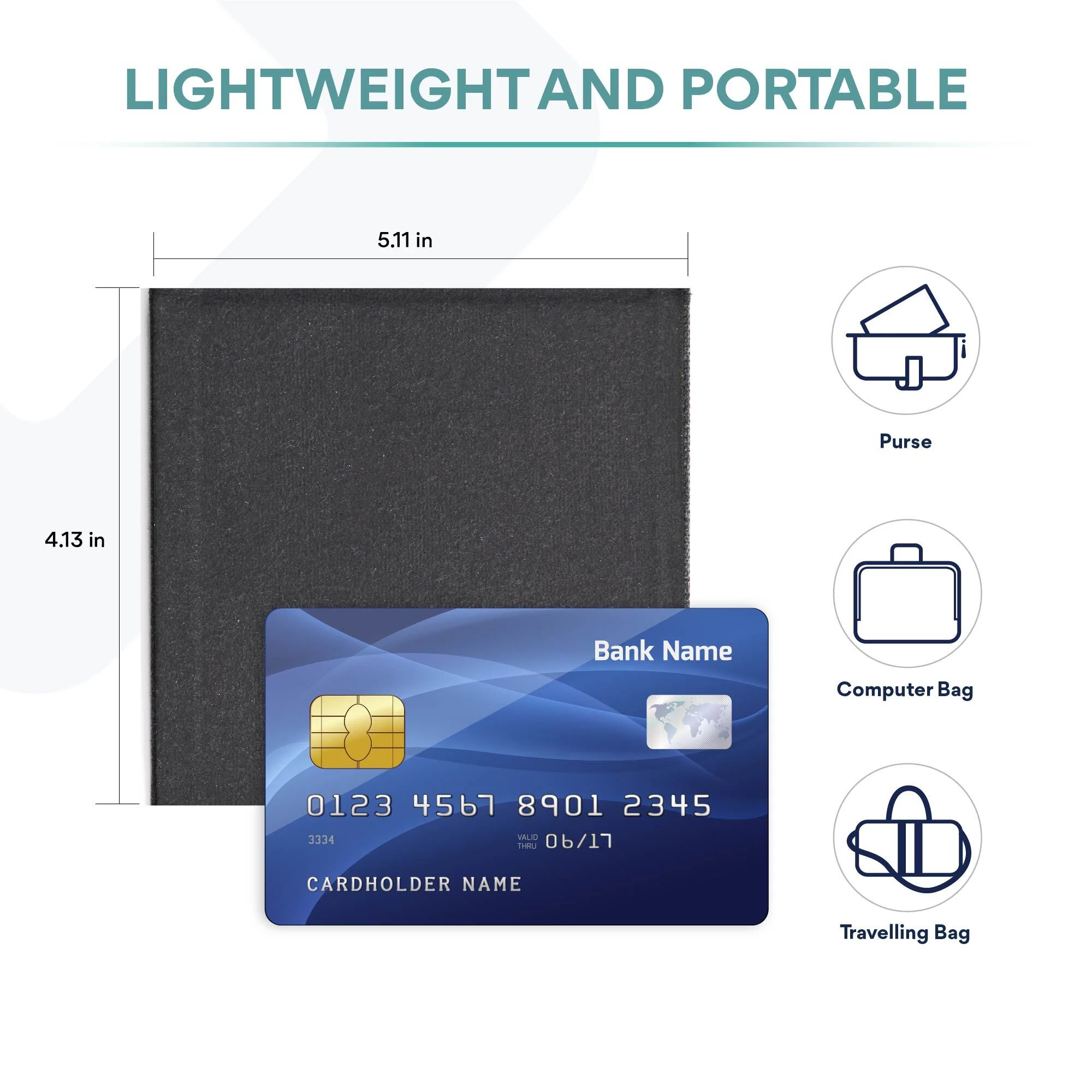 - At only 3”x 3”x 0.5” and weighing only about 2 ounces, it’s minimalist, durable, portable, and travel friendly.